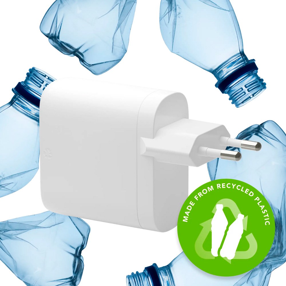 The wall charger is made from 100% GRS-certified recycled plastic and is fully recyclable. It is manufactured with GaN technology, which means it is smaller and more powerful than traditional wall chargers. The power supply is therefore more efficient, resulting in less heat waste and lower energy consumption - there’s no reason not to choose this wall charger from dbramante1928 if you care about the environment and want top-level quality and functionality.