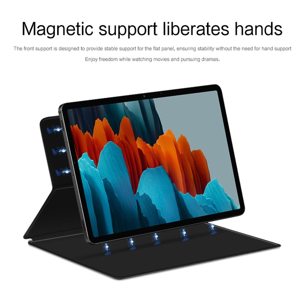 The integrated magnetic stand provides stable, hands-free viewing angles. The smart auto wake/sleep function turns the screen on when the case is opened and off when closed - perfect for saving battery life.