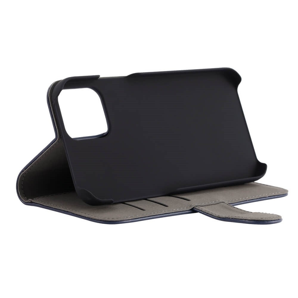 The surface of this iPhone 12 / 12 Pro case is coated with top quality faux leather. It is soft and extremely comfortable to hold. The case opens and closes with a magnetic flap.