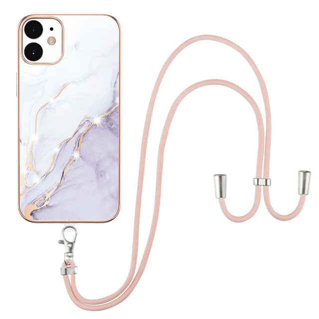 iPhone 12 / 12 Pro Marble Hybrid Case w. Adjustable Strap - White