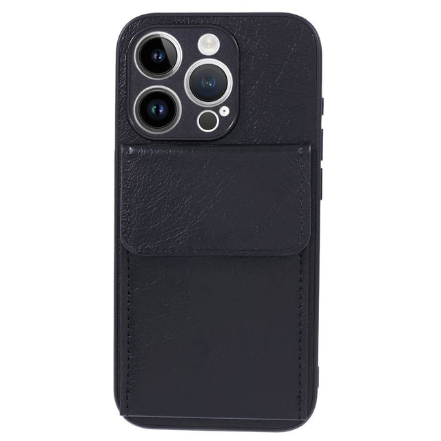 iPhone 15 Pro Leather Covered Plastic Case with Card Holder - Black