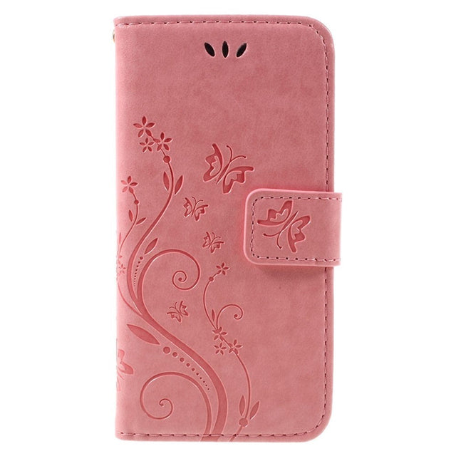 a butterflies case for iPhone See (2022/2020), iPhone 8 and iPhone 7 , that provides extra good protection against scratches and knocks by loss of your iPhone. The case is made in a soft Imitation Leather material, which is decorated with engraved flowers and butterflies , giving a unique look.