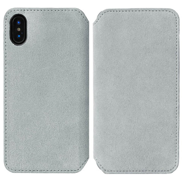 Broby Slim Wallet iPhone XS/X Suede Flip Case - Grey
