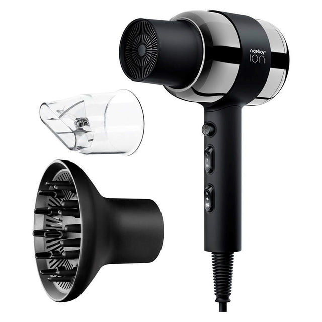 Niceboy ION AirSonic Pro is a powerful hairdryer designed for effective and gentle hair styling. With a 2200W motor and ionic technology, it is suitable for all hair types and ensures fast drying while protecting the hair and leaving it shiny.