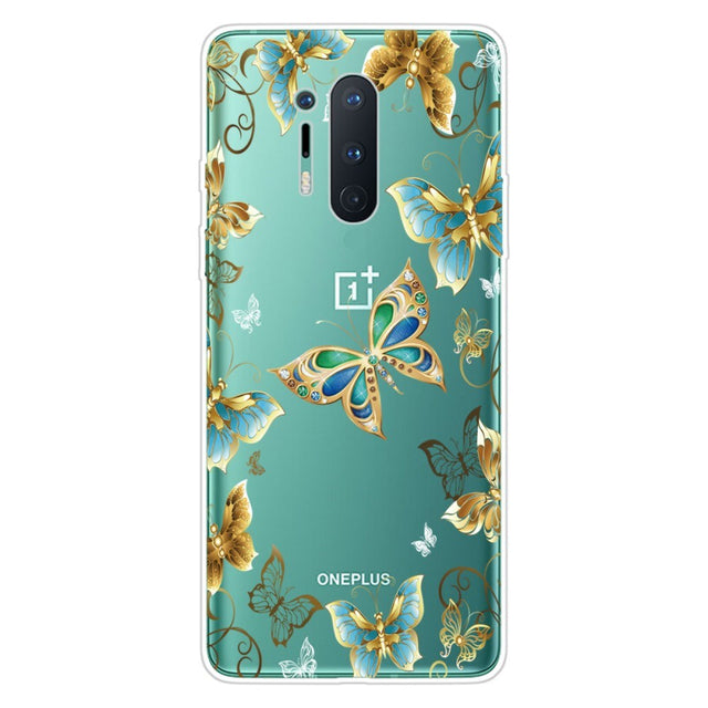 OnePlus 8 Pro Flexible Plastic Case w. Print - Transparent / Butterflies