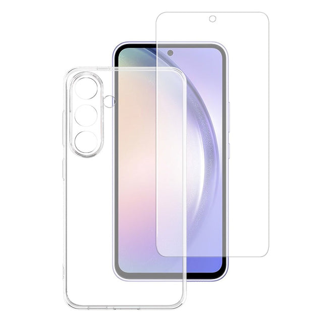 Both a flexible plastic case and a tempered glass are included. It's a 100% transparent strong tempered glass that protects your phone from impacts. The glass has anti-fingerprint and rounded edges, so you have a neat and comfortable experience when using your phone with the glass attached. The glass is also case-friendly, so you can use the case while the glass is fitted.