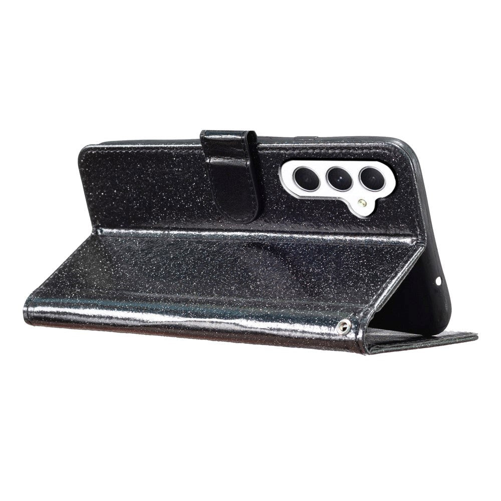 Samsung Galaxy A35 (5G) Leather Flip Case with Wallet and Strap - Glitter - Black