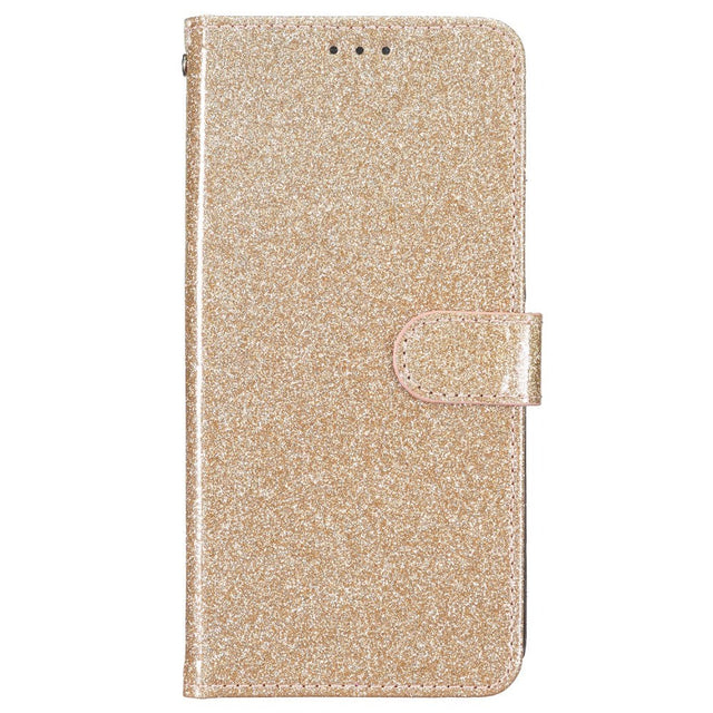 Samsung Galaxy A55 (5G) Leather Flip Case with Wallet and Strap - Glitter - Gold is backordered and will ship as soon as it is back in stock.