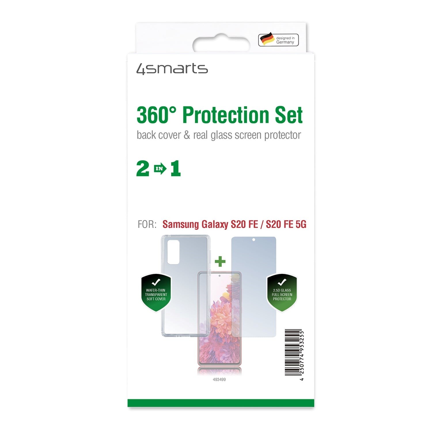 Samsung Galaxy S20 FE / S20 FE (5G) 4smarts 360⁰ Protection Set provides complete protection for your smartphone. The package includes a "second glass" that has a nice rounded edge and a finish that makes the glass blend in with the phone's design, as well as a nice back case.