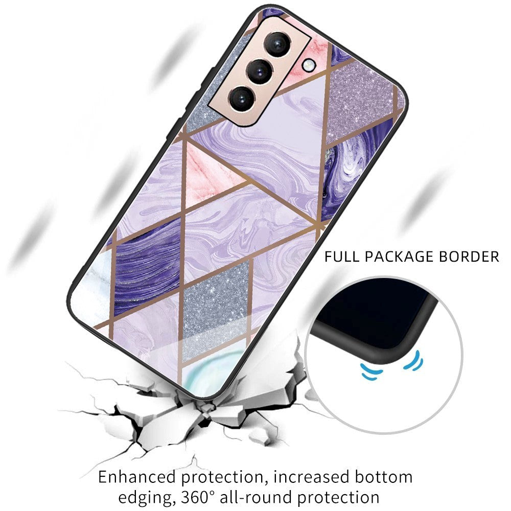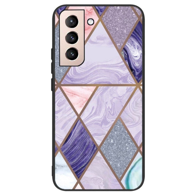 Samsung Galaxy S22 Plastic Case w. Glass Back - Purple Rhombus