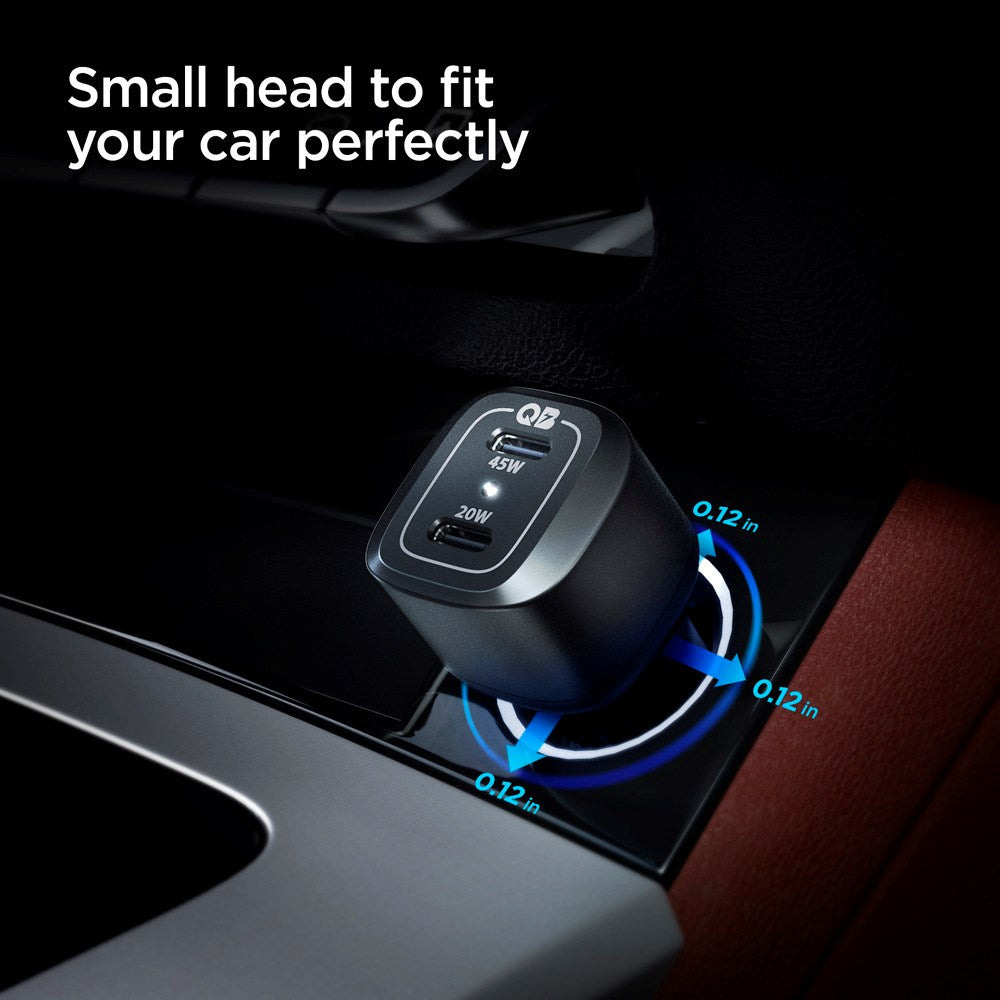 Here you get a small but powerful car charger from Spigen, where you can connect 2x USB-C cables and charge with 45W and 20W respectively. This charger supports Power Delivery, so you are guaranteed a fast charge. A perfect solution for charging multiple devices when you're on the go.