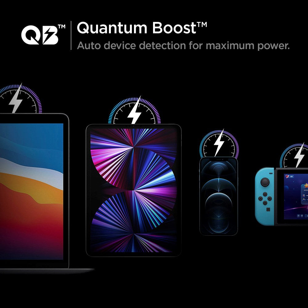 The charger supports a charge of 45W with one USB-C port and 20W with the other USB-C port, so you can quickly get power on your device.