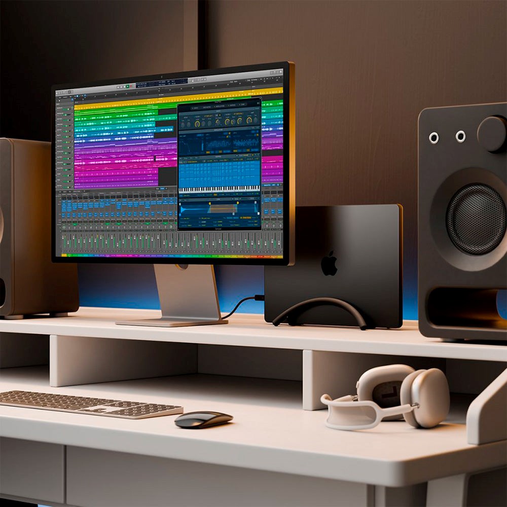 The vertical position frees up space on your desk, and the stand can be adapted to future MacBook and laptop models, which ensures long-term use.